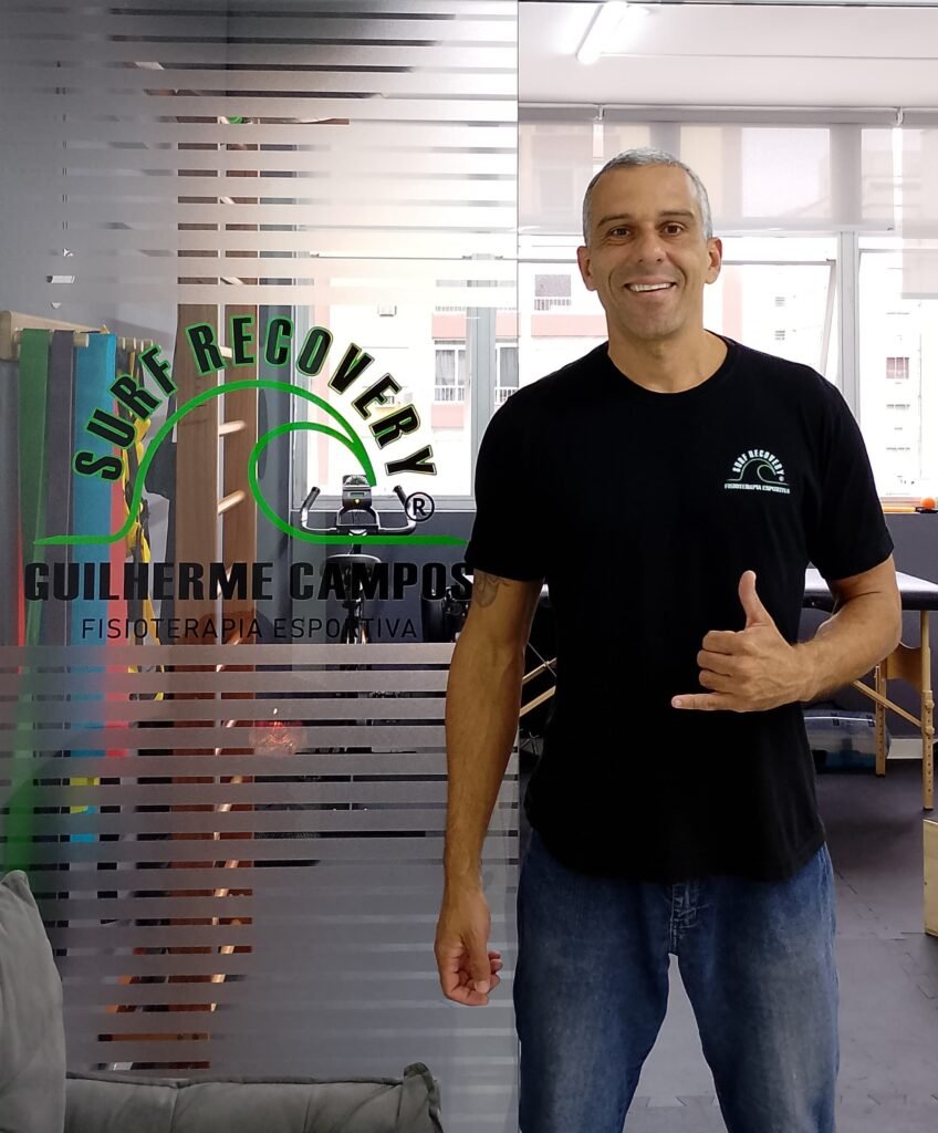 Guilherme Campos – 42 anos – Fisioterapeuta pós graduado em Fisioterapia traumato ortopédica e esportiva – Surfista.
